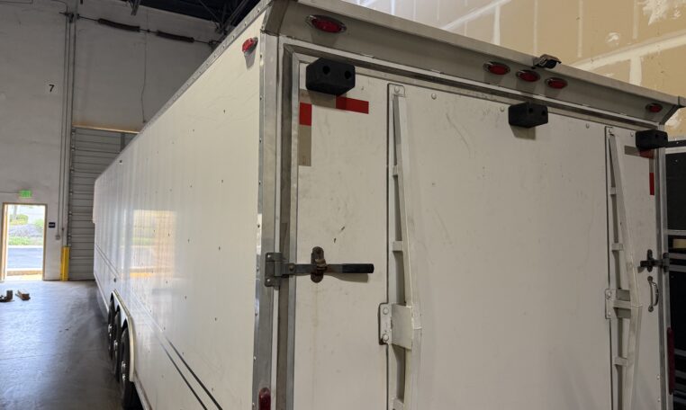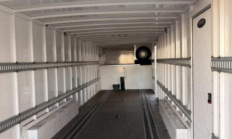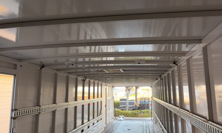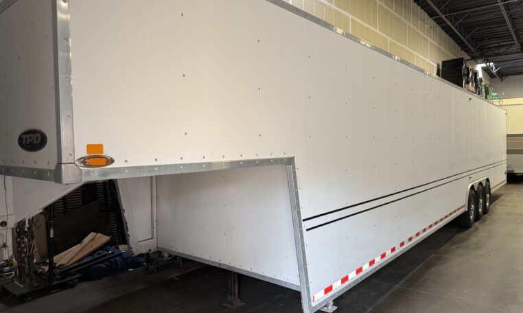 44 ft( 8 ft riser + 36 floor) Scorpion Bedliner along the length of the trailer.